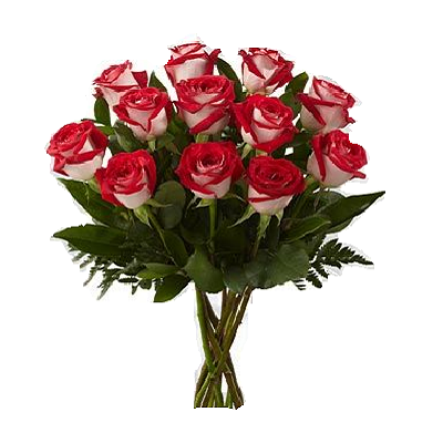 10 two-color (white-red or white-pink) roses of the Osiria variety.