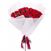 A truly beautiful bouquet with 51 red roses, gypsophila, and greenery in a luxurious bouquet of various colors!