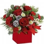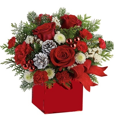 Χριστουγεννιάτικη σύνθεση σε κόκκινο κουτί